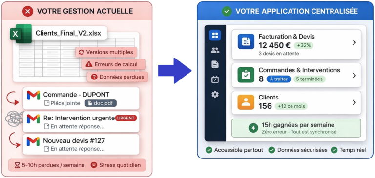 Remplacez vos outils bricolés par une application simple, fiable et utile.